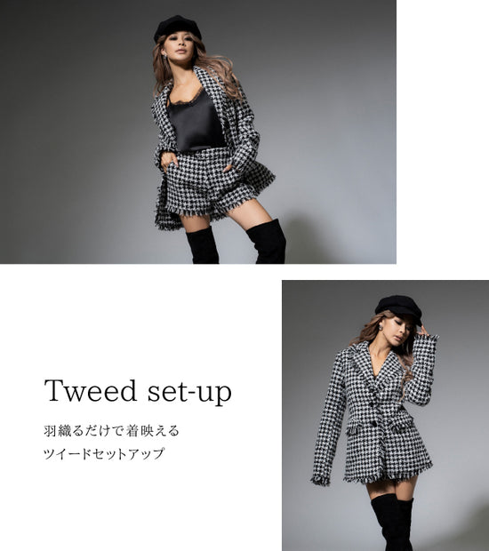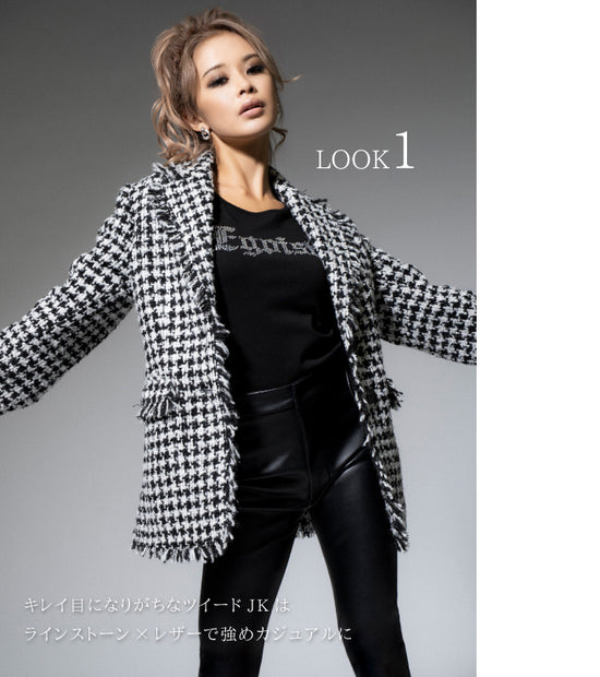 EGOIST27周年を記念し、2003年~2008年のSEXY&GLAMAOROUS時代のHIT商品を復刻版として再現しました。ウール混の上質なツイード素材で仕立てた高級感漂うジャケット。カチッと堅苦しい印象にならないよう、端始末はフリンジをあしらい遊び心のあるデザインに仕上げました。はっきりとしたモノトーンカラーの表情豊な織り目が360度どこから見ても目を惹きます。羽織るだけで着映えるのでシンプルなトップス合わせでも手抜き感がなくお洒落にまとまります。首元があくのでタートルネックのインナーとも相性抜群。ミニボトムやスキニーなどで合わせた時にメリハリが付けられるようにバランスを考え、長めの着丈に設定しています。日によって綺麗め以外でも着こなしたい方は、デニムボトムを合わせてカジュアルダウンさせたり、レザーアイテムで辛口要素をプラスするのもオススメ。裏地付きでしっかりと厚みのある生地を使用しているため、暖かみがあり本格的に寒い時期がくるまでの期間重宝すること間違いなし。(125108309001とSETUPで着用可) 【生地感】透け感 :なし 裏地 :あり 伸縮性 :なし 生地の厚さ:厚い 品番 125108311001 素材 表地 ポリエステル70% ウール30%裏地 ポリエステル100% 原産国 中国 送料 605円(tax in) 返品・交換 返品特約