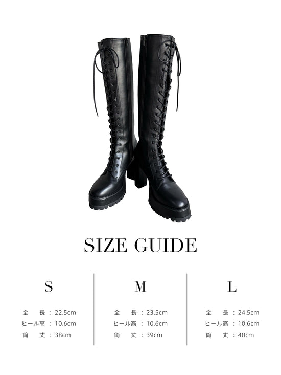 "■detail大人気のレースアップロングブーツの復刻版が登場。 上まで大胆に編み上げられたレースアップのデザインと、プラットフォームで美脚効果抜群。レースアップの締め具合を調整できるため、ふくらはぎや足首が自分のサイズにフィットするのも嬉しいポイント。ミニボトムとの組合せやスキニーパンツをブーツINなど、様々なコーデに合わせてスタイリングを格上げします。またラグソールにする事で綺麗めになりすぎず、カジュアルテイストの洋服にも映えます。膝下までしっかり覆うロング丈で、防寒性にも優れています。 トレンドを抑えたラグソールは滑り止め効果もある為、足場の悪い場所でも履きやすいです。 レースアップ紐・ハトメ・内側ファスナーを黒で統一することで、スタイリングに取り入れやすく、幅広いシーンで活躍してくれます。S…22.5~23㎝M…23.5~24㎝L…24.5~25㎝" 品番 125115414001 素材 アッパー:合成皮革 底:合成底 原産国 中国 送料 605円(tax in) 返品・交換 返品特約