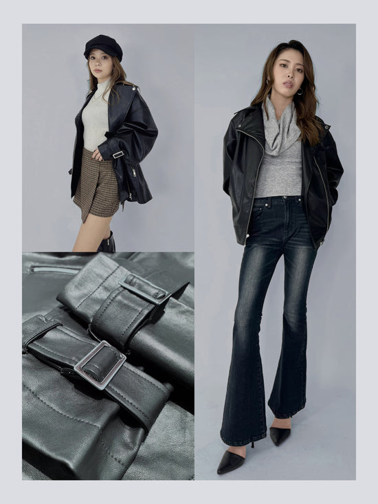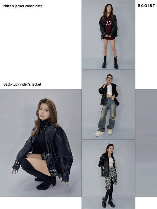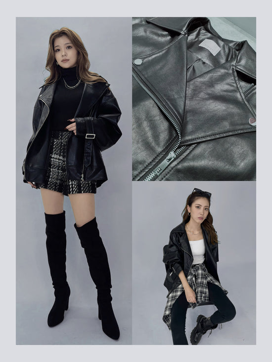 大きな衿がポイントのフェイクレザーライダースジャケット。ビッグカラーは、小顔効果をもたらしてくれるのも嬉しいポイント。ゆとりを持たせたアームと身頃の作りで、ボリュームのあるトップスでも窮屈感なくインナーに取り入れやすいです。ヒップが隠れる長めの着丈で、体型カバーもばっちり。付属品は全て艶ありシルバーで統一することで高級感を出しました。お好みで袖口の絞りを調整できるように、袖口BELTを付けています。センターバックにはざっくりとタックを入れ立体感を出し、360度どこから見ても抜かりのない1枚に仕上げました。流行りすたりのないライダースは1枚あると重宝すること間違いなし。レザーの辛口アイテムをレディライクに着こなしたい方は、スキニー/ミニボドム/タイトワンピースの合わせがオススメです。程よいツヤ感とシボ感のフェイクレザー生地が、まるで本革と思わせるような見た目。硬すぎない生地感のものを選んでいるので、ごわつきもなく全体にハリが出てしまうのを抑えてくれます。【生地感】透け感 :なし裏地 :あり 伸縮性 :あり 生地の厚さ:普通 品番 125108911001 素材 表地 合成皮革 裏地 ポリエステル 100% 原産国 中国 送料 605円(tax in) 返品・交換 返品特約