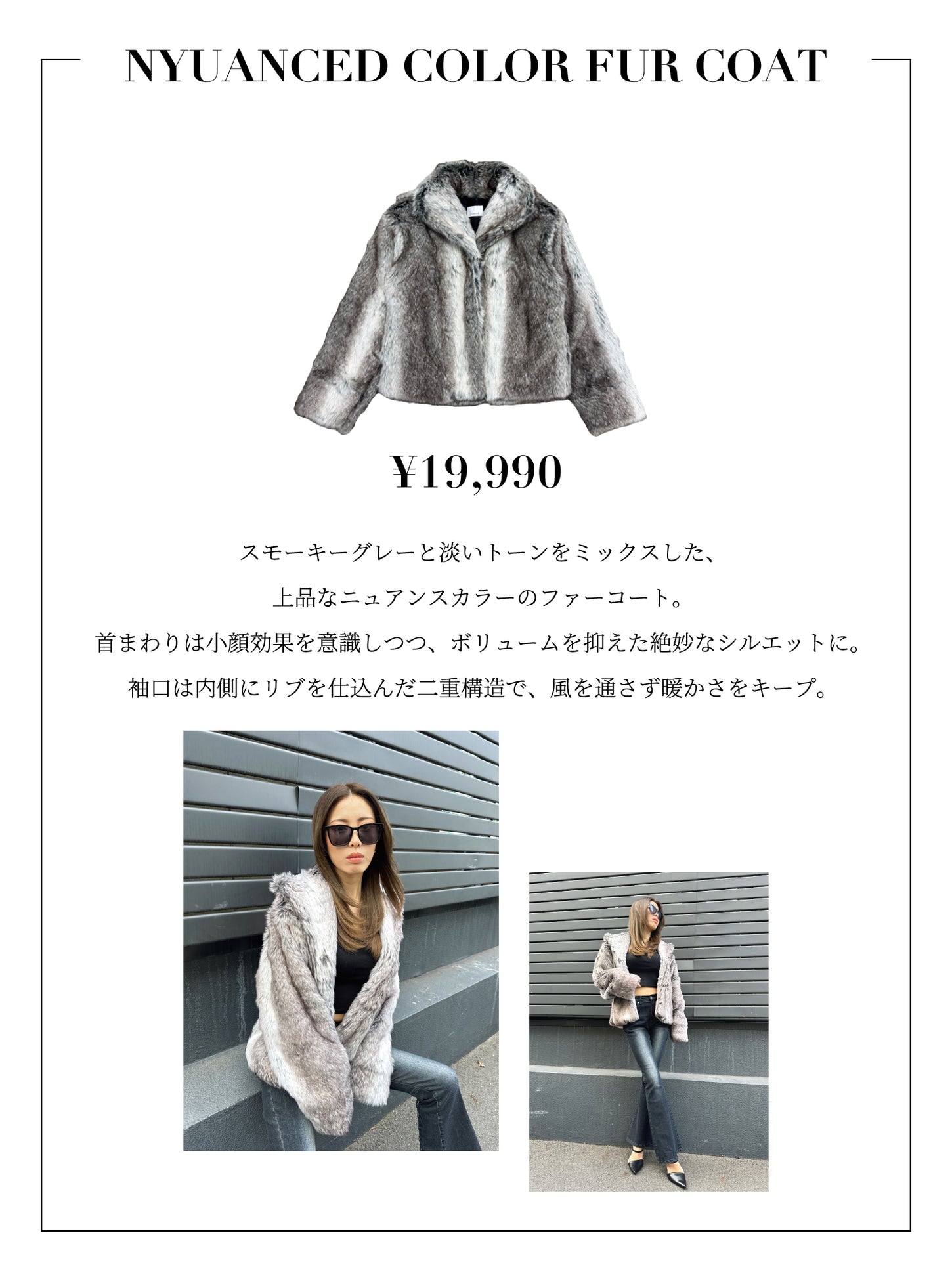 スモーキーグレー×淡いトーンをミックスさせた色味が上品な印象のファーコート。曖昧な色味が特徴のニュアンスカラーは光の当たり方で色が変化して見えます。首回りにボリュームを出して膨張するのは避けたい!でも小顔効果も欲しい!そんな両極端な要望にも応えられるよう、衿の形や大きさを細かく調整しバランスよく整えました。袖口は2枚構造になっており、内側はリブでキュッと止まるので袖口から風が侵入せず防寒効果もばっちり。身頃部分には裏地が付いているので風通しも防いでくれます。フロントはスナップボタン仕様で、着脱がスムーズ。ファーコートはボリュームが出やすいのでボトムはすっきりとミニマルに。綺麗めに着こなしたい方はスキニーパンツ、タイトワンピース、ミニボトムの合わせがオススメです。全体をモノトーンにまとめて大人な余裕感を演出するのも◎ 【生地感】透け感 :なし 裏地 :あり 伸縮性 :なし 生地の厚さ:厚い 品番 125108912001 素材 表地 ポリエステル100% 裏地 ポリエステル100% リブ ポリエステル98% ポリウレタン2% 原産国 中国 送料 605円(tax in) 返品・交換 返品特約