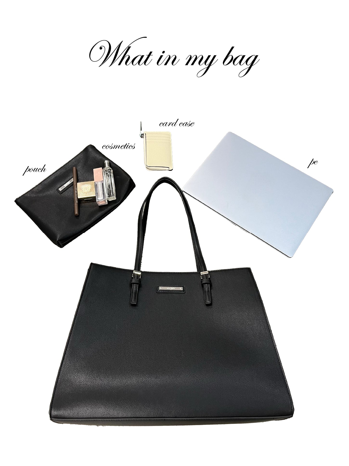 繊細なシボ感と落ち着いたマット仕上げで、大人の洗練を引き立てるレザー調バッグ。多機能ポケットを内臓し、収納力も抜群です。内側中心はファスナー付き収納スペースで仕切っているので、整理整頓がしやすいのも魅力の一つ。横幅36cmまでのノートパソコンがすっぽり収まる大容量設計になっているため、ワークシーンでも活躍します。レザーパッチの上にメタリックシルバーのロゴ入りプレートをのせ、オリジナリティと高級感をプラス。同素材のポーチにも同様のプレートを付けています。重厚感のあるバッグ本体に対し、華奢な持ち手を組み合わせることで、女性らしい上品さを表現しました。開口部はマグネット釦を付けて、プライバシーに配慮した中見え防止仕様に。両側面はあえて芯をなくすことで硬さがなくなり、横幅があるものを入れやすいようにしました。ポーチ:横幅24,5cm 縦幅19cm 品番 125118214002 素材 本体 合成皮革 裏地 ポリエステル100% 原産国 中国 送料 605円(tax in) 返品・交換 返品特約